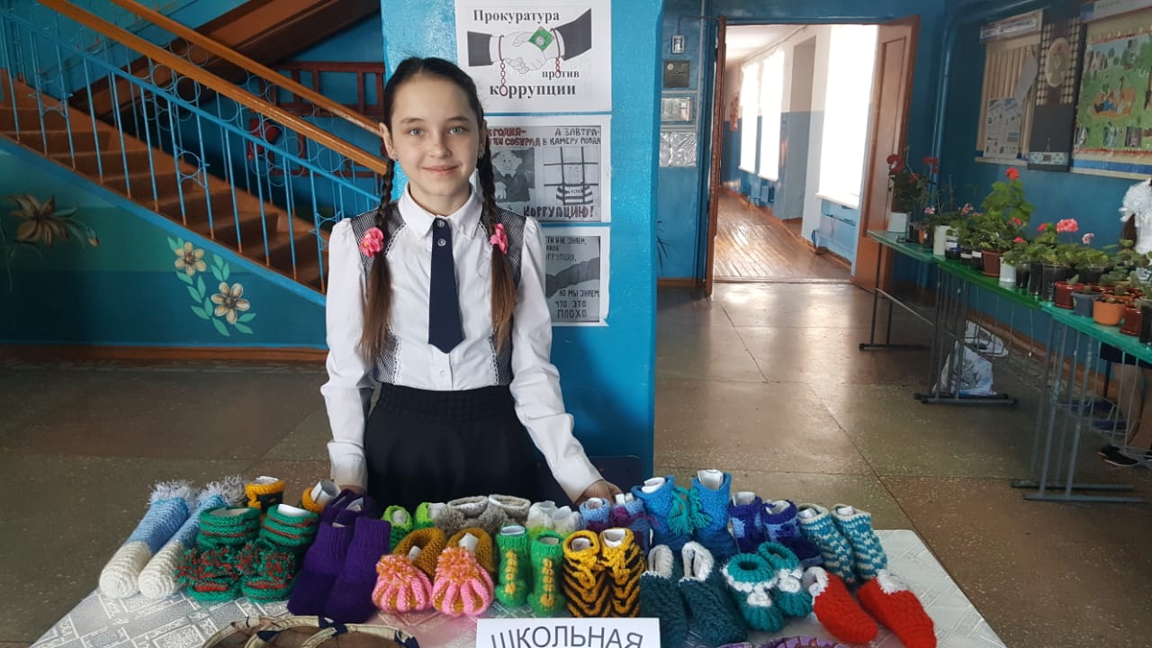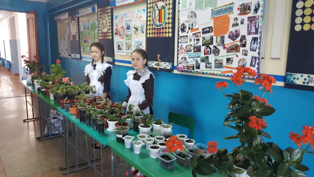 Школьная ярмарка: продажа рассады и работ кружка вязания.