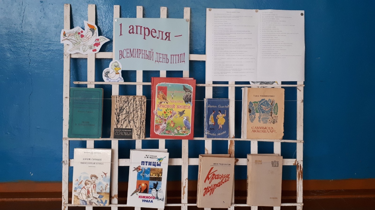 1 апреля во всем мире отмечается День птиц. Этому событию в школе оформлена книжная выставка ко Дню птиц.