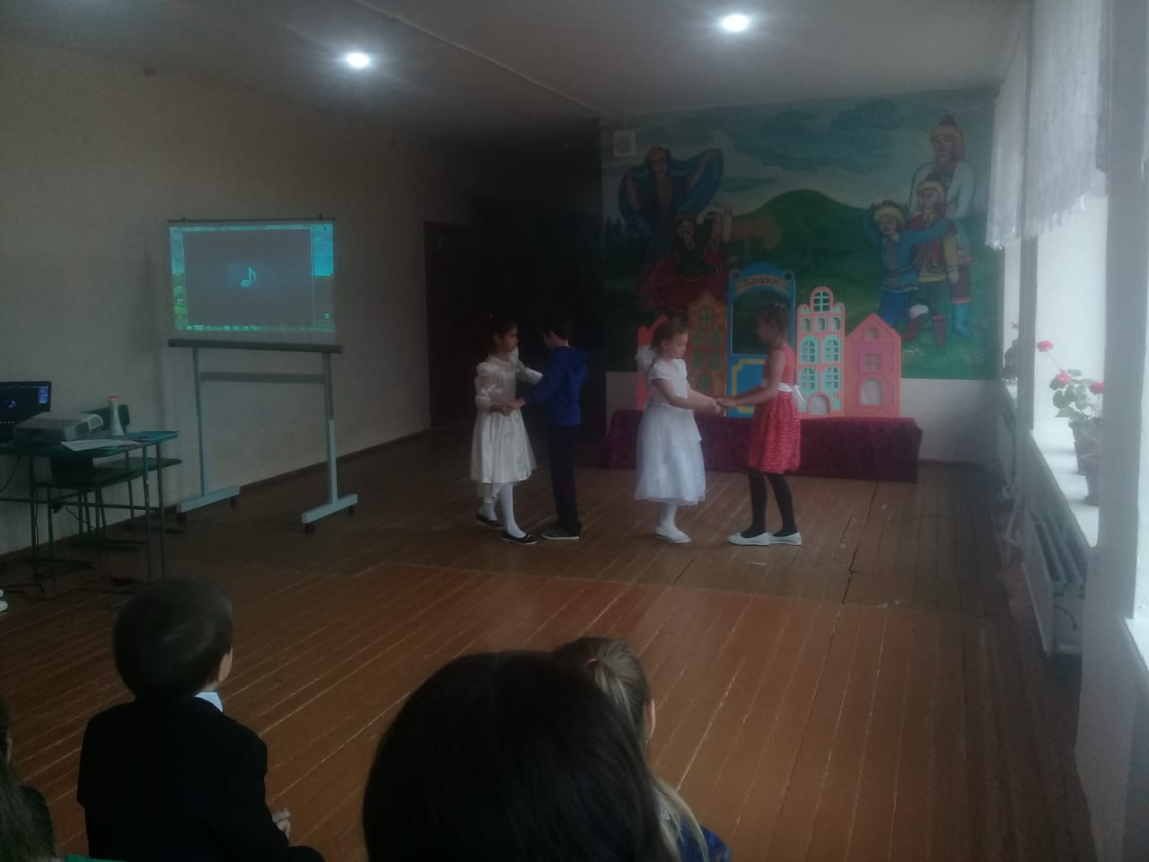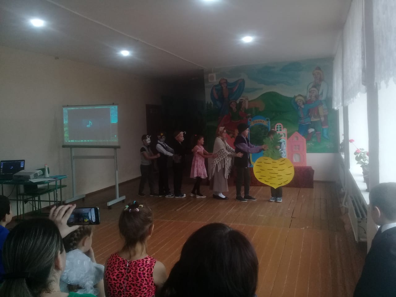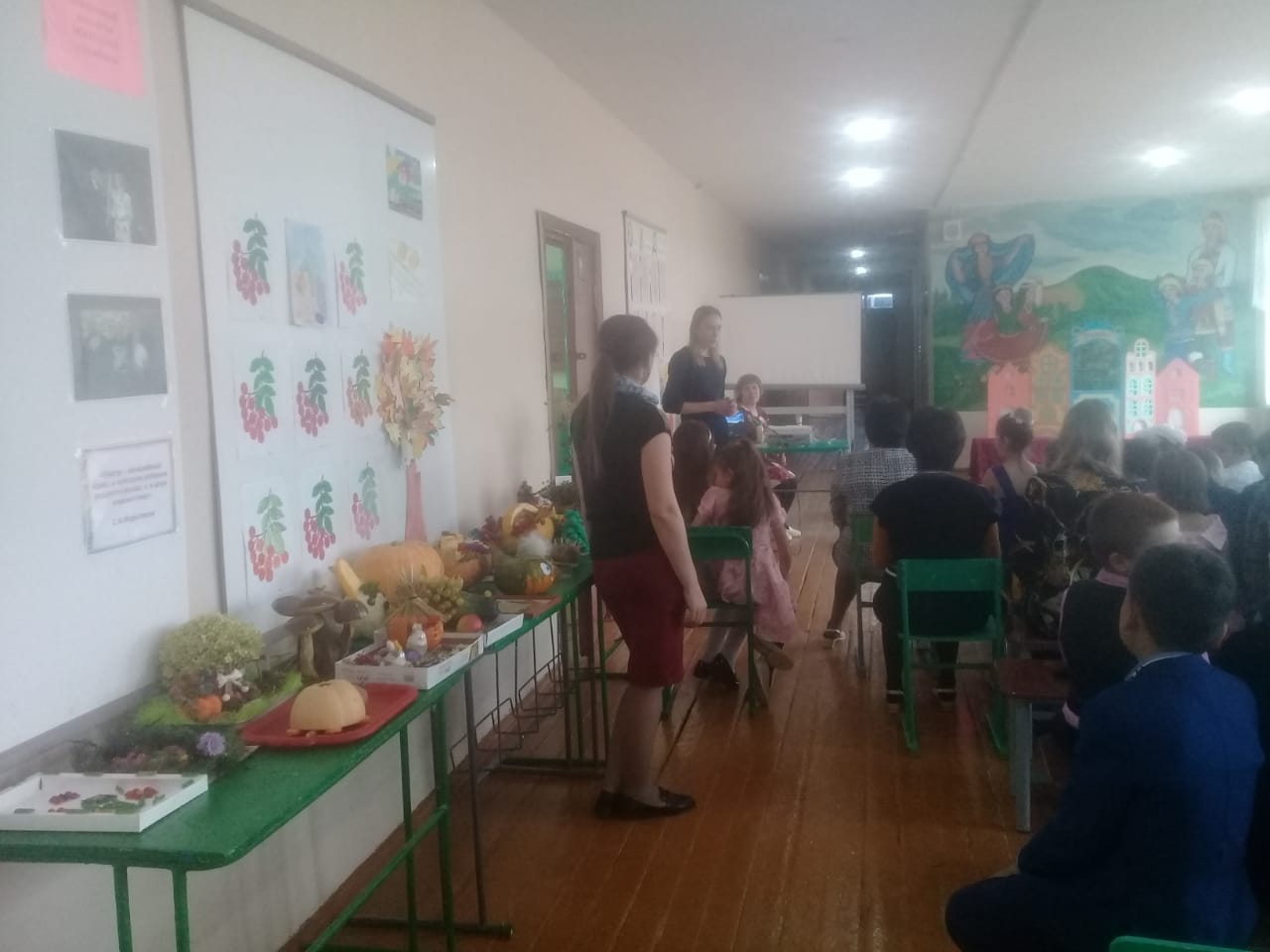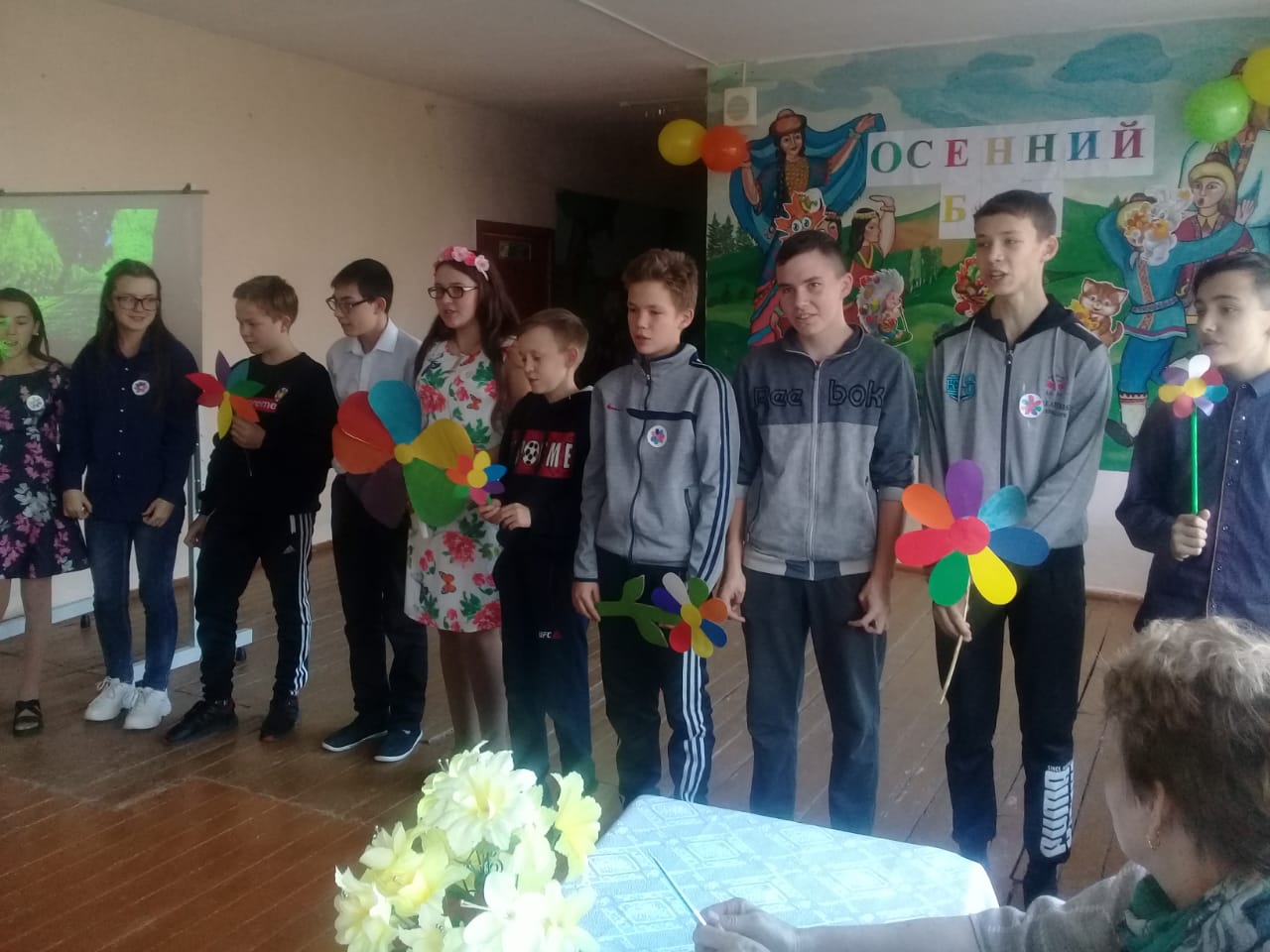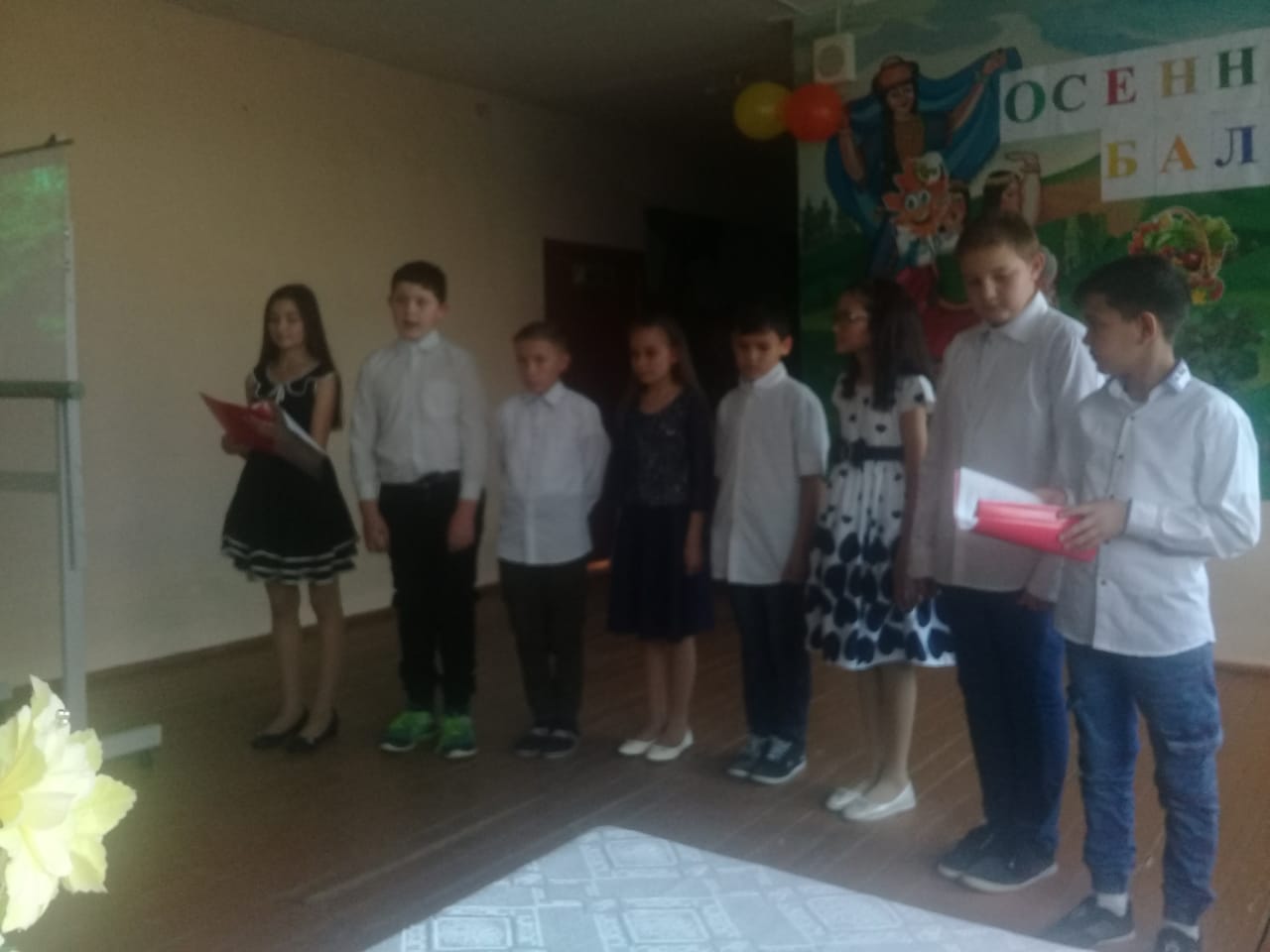 В начальной школе прошел Осенний бал для учащихся 1-4 классов. Бал действительно удался. От каждого класса были представлены творческие номера. У первого класса - это был кукольный театр, второй класс – стихи и песня про осень, третий класс – зажигательный танец и песня, четвертый класс – показали сказку про репку.