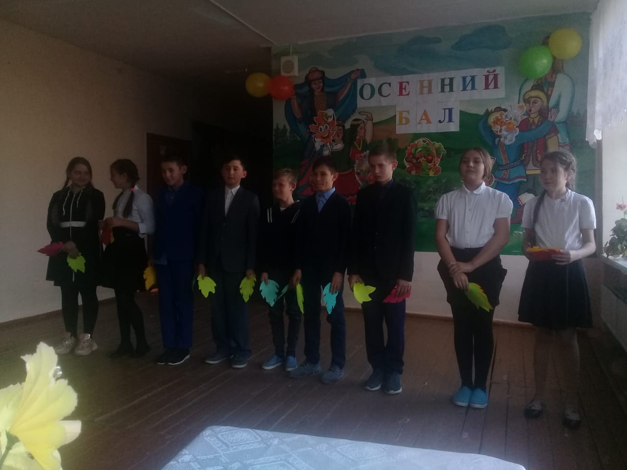 26 октября в нашей школе прошел « Осенний бал». Это мероприятие проходит из года в год на протяжении многих десятилетий. И каждый раз бал вызывает у школьников много волнений и радости ответственности перед его приготовлением. В нынешнем году ответственность на проведение «Осеннего бала» легла на учащихся 5-го класса, совместно с педагогом-организатором. Был придуман очень интересный сценарий, в котором были задействованы все участники мероприятия. Были розданы задания по классам, которые подготавливали учащиеся вместе с классными руководителями. Все здания были творческими. Работы классных коллективов оценивало жюри. Зрителям очень понравились танцы в исполнении 6 и 9 классов, визитка и песня в исполнении 6 и 8 классов.
